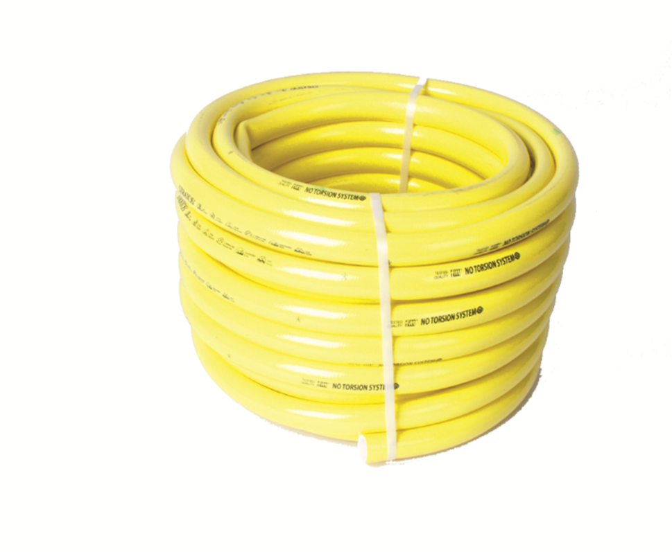 Top-Kunststoffwasserschlauch (PVC) Innen schwarz, aussen gelb, glatt Mit speziell gestrickter, drallfreier Einlage, Temperatur –15° bis +60°C 12 bar In 25 m Rollen